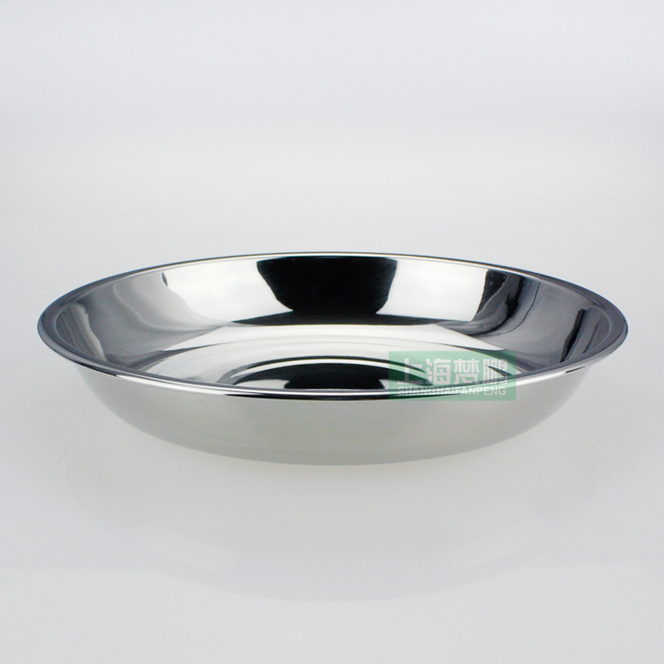 不銹鋼304圓菜水果餃子盤子 無磁食堂快餐淺盤 酒店餐具碟子碼斗